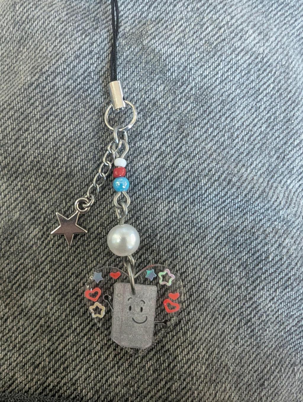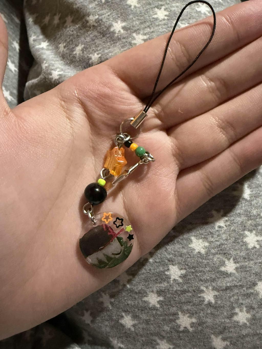 I comissioned a phone charm of my oc and it just arrived and I keep happy stimming every time I see it! Shipping was fast and transparent, the beadeork complements the art beautifully, and the custom charm is smooth, flat, and feels quite durable! Thanks so much!!!